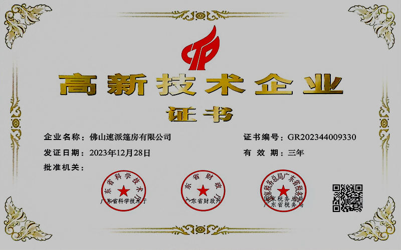 “速派”秉承“質(zhì)量第一、服務(wù)至上”的宗旨,始終堅(jiān)持以客戶(hù)需求為導(dǎo)向,不斷創(chuàng)新,提升產(chǎn)品質(zhì)量和服務(wù)水平,為做到技術(shù)引領(lǐng),我們建立了省級(jí)工程技術(shù)研究中心。經(jīng)過(guò)多年在篷房領(lǐng)域的深耕,獲得了各級(jí)部門(mén)的高度認(rèn)可,取得《國(guó)家高新技術(shù)企業(yè)》、《廣東省篷房柔性制造工程技術(shù)研究中心》、《廣東省專(zhuān)精特新中小企業(yè)》、《廣東省“守合同重信用”企業(yè)》、《制造業(yè)高質(zhì)量發(fā)展標(biāo)桿企業(yè)》、《重點(diǎn)信用認(rèn)證企業(yè)》等30多項(xiàng)資質(zhì)、榮譽(yù)證書(shū),180多項(xiàng)專(zhuān)利證書(shū)(其中20多項(xiàng)發(fā)明專(zhuān)利),業(yè)務(wù)市場(chǎng)輻射全國(guó)及海外150多個(gè)國(guó)家地區(qū),先后為奧運(yùn)會(huì)、亞運(yùn)會(huì)、F1賽事、美國(guó)網(wǎng)球公開(kāi)賽、馬術(shù)聯(lián)賽、中國(guó)國(guó)際航展、亞洲通航展、國(guó)際家博會(huì)、中國(guó)國(guó)際消博會(huì)、中阿博覽會(huì)等一系列大型賽事、活動(dòng)提供了戶(hù)外保障解決方案和服務(wù),并為我國(guó)各軍兵種提供了各型裝備的保障產(chǎn)品。